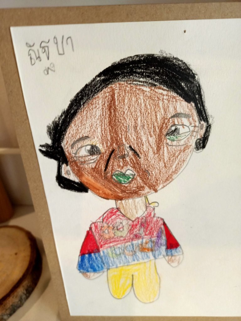 เพราะว่าหนูชอบตัวเองหนูจึงได้วาดมันออกมาอย่างซื่อตรง และเอ็นดูมากที่จินตนาการระยะเวลาแก่ของเด็กยังไกลไปถึงแค่ “น้องของเขาที่กำลังโต” ซึ่งเท่านี้ก็น่าทึ่งมากแล้ว คิดดูสิ เด็กๆ เพิ่งอยู่บนโลกมาได้ 2-3 ปีเองนะ