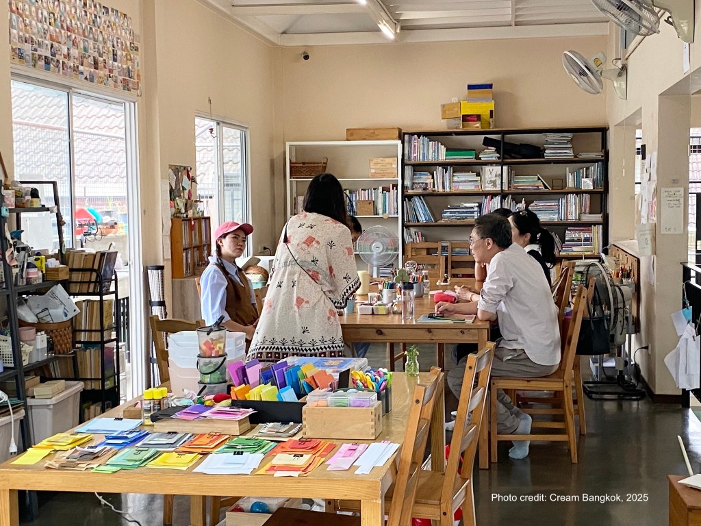 ที่งานจะมีกลุ่มเด็กจากโรงเรียนต่างๆ เข้ามาเยี่ยมชมและทำกิจกรรมกันอยู่เรื่อยๆ ทางพิพิธภัณฑ์ก็จะมีบริการนำชมด้วยค่ะ