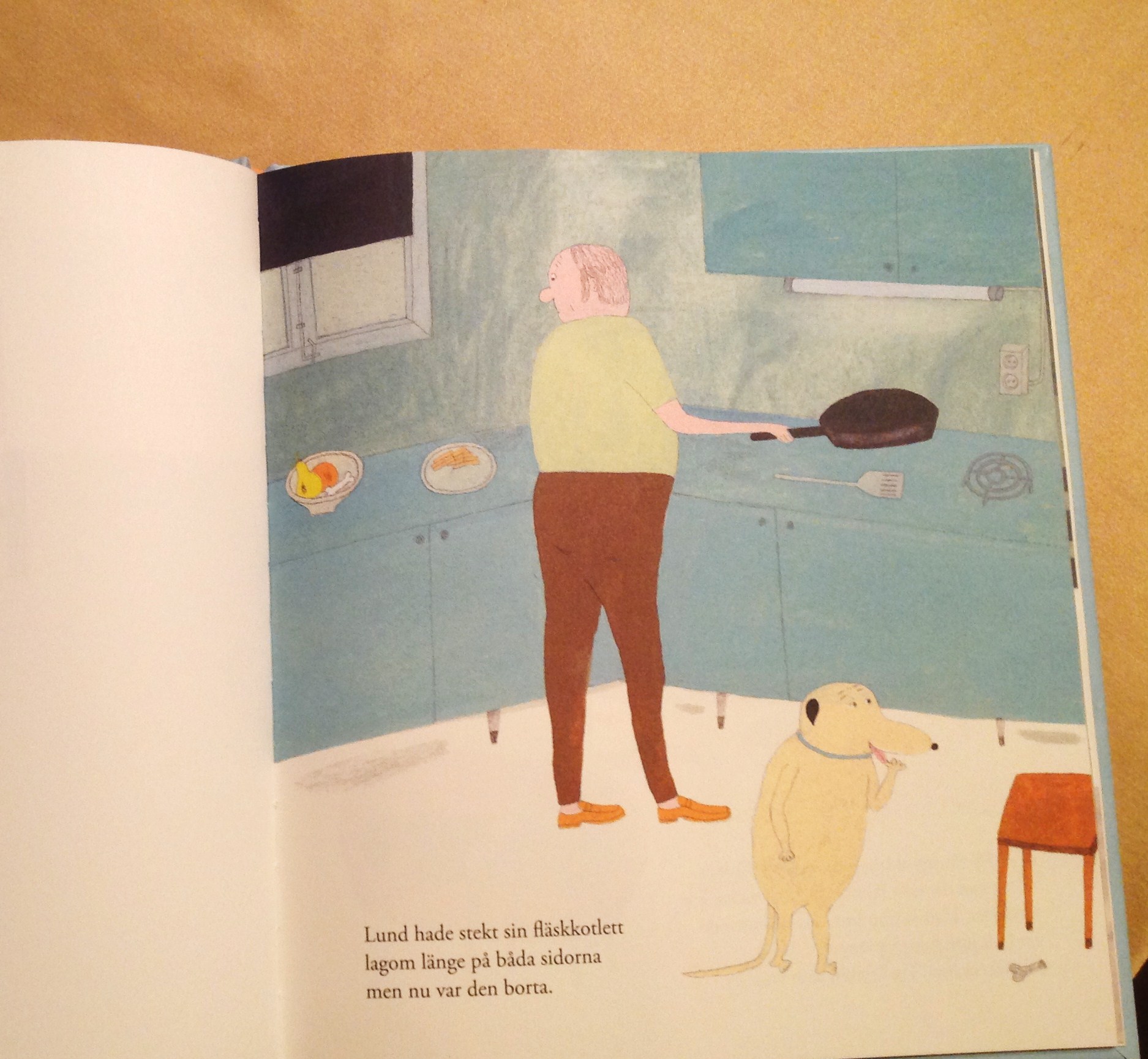 Kulan เป็นหมา แต่เธอไม่ชอบกินอาหารหมา “ทำไมฉันไม่เคยได้กินอาหารทอดกับเขาบ้างเลยล่ะ “ Kulan บ่นกับ Lund “ได้สิ เดี๋ยวฉันจะทำให้เธอ ” ว่าแล้ว Lund ก็จัดแจงทอดอาหารหมา (kibble) แล้วเสิร์ฟให้ Kulan อย่างดีในชาม แต่แหม Kulan แอบกินเนื้อหมูชุบแป้งทอดไปตั้งเยอะแล้ว “ฉันอิ่มแล้วล่ะ อิ่มสุดๆ ไปเลย” เธอบอก Lund หน้าตาเฉย ข้างนอกมืดลงและพระจันทร์ก็ขึ้นแล้ว พระจันทร์ดูขาวและซีด “ฉันชอบพระจันทร์จังเลย” Kulan พูดขึ้นมา “เธอชอบงั้นเหรอ” ว่าแล้ว Lund ก็จัดแจงเอาค้อน เลื่อย สว่าน และอะไรต่างๆ นานาออกไปไว้ที่สนามหน้าบ้าน